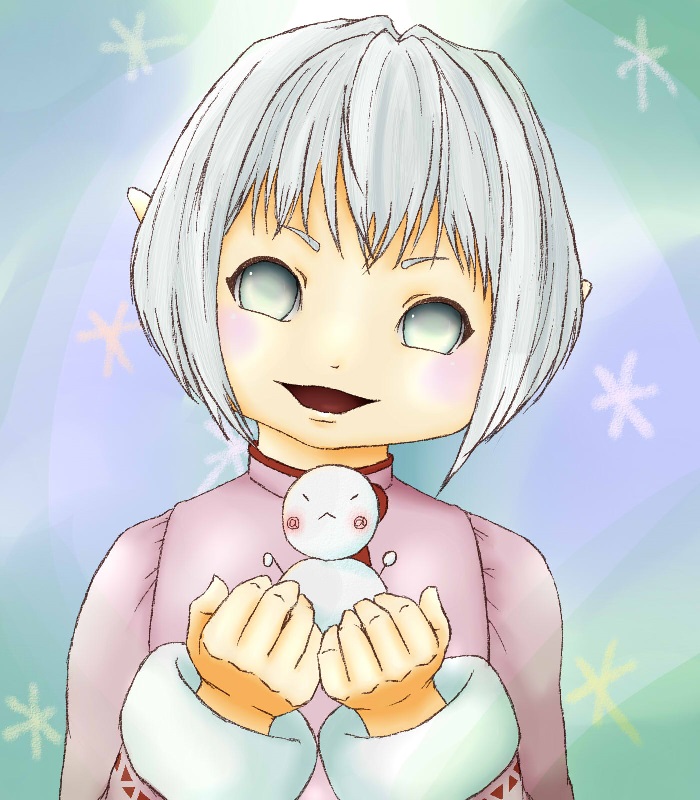 絵を描き始めたのが冬の入り始めだったので雪だるま持ってますが、もう春の方が近いくらいですねw。