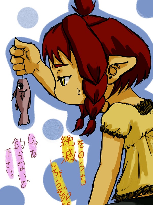 この絵は、お魚があまりにも大量に釣れすぎて「この魚、いつか全滅するんじゃないか・・・!?」と心配になったときの絵です。