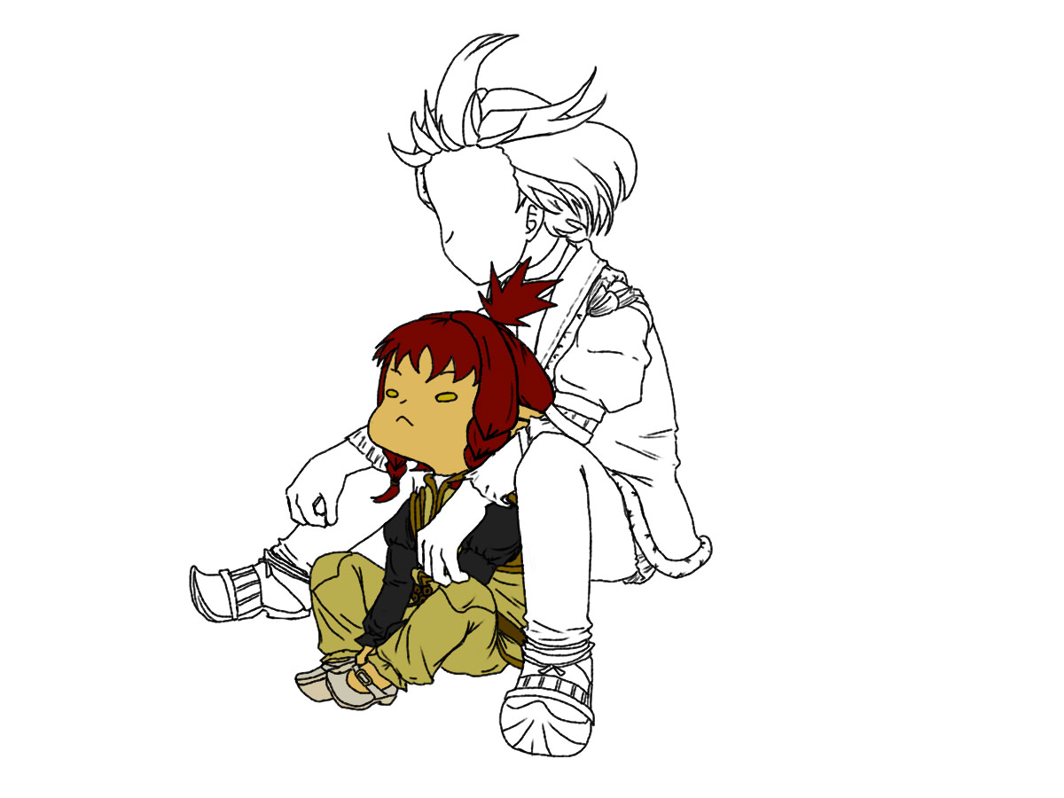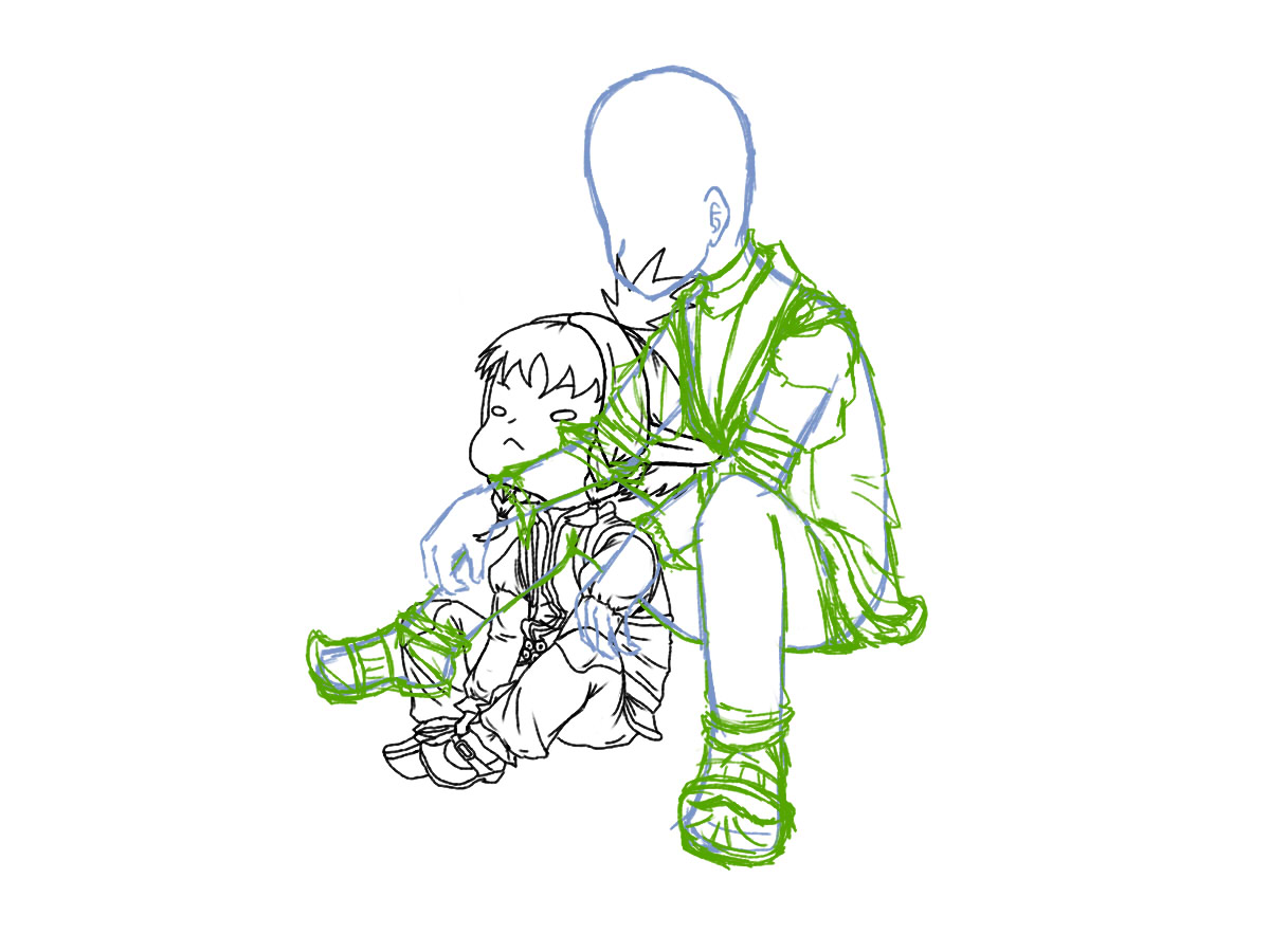 前このイラストを描いたときからだいぶ時間が経っちゃいましたが、今回は銀(予定)の服の下描きをしました^^。