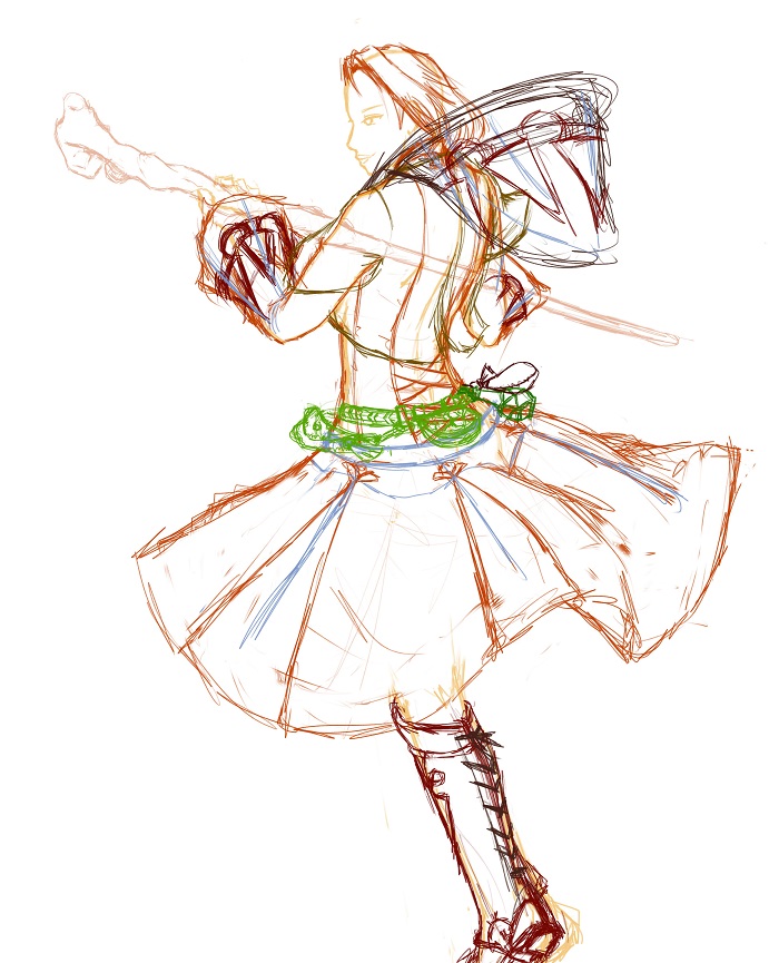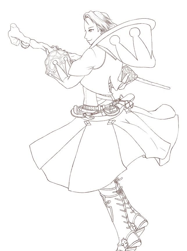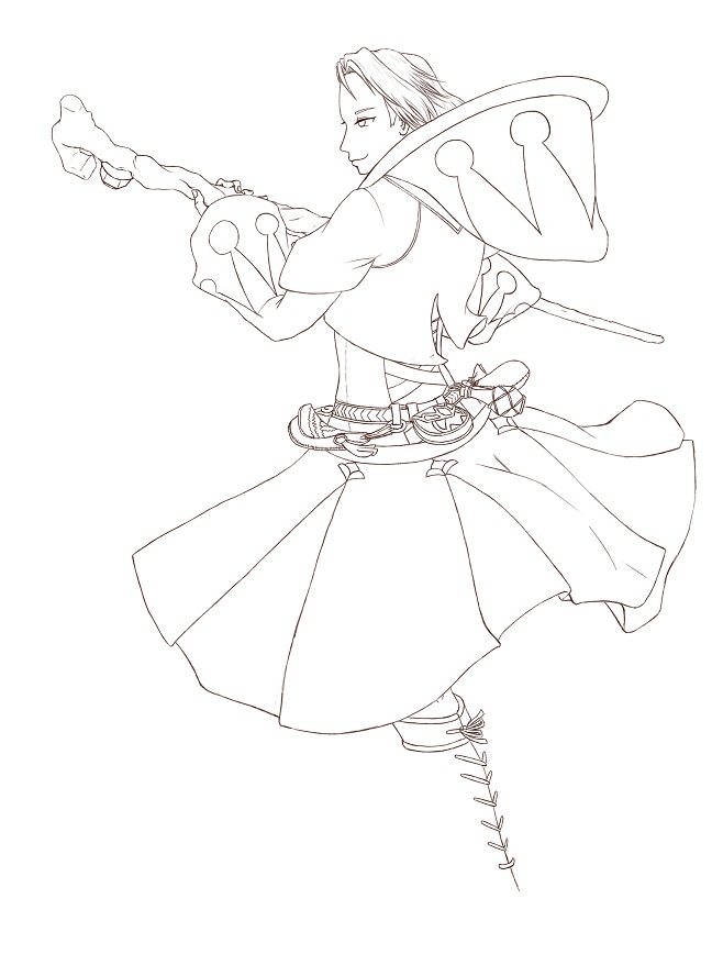 この絵の中の装備では一番描きやすいだろうと思っていたのに、細かいところが意外と凝っていてなかなか描き辛い。。。